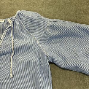 Melissa Nepton Olivia Blue & White Striped Peasant Top XL Crochet Boho Linen Beach