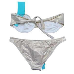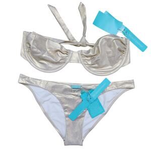 Melissa Odabash Barbados Gold Bikini Top & Bottoms Set US10 Beach Vacation
