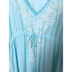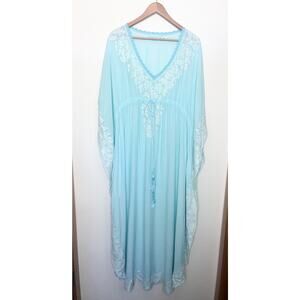 Melissa Odabash Blue Embroidered Kaftan Maxi Dress Coverup ONE SIZE