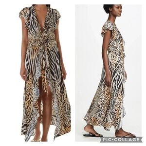 Melissa Odabash Brianna Wrap Dress Cover Up Leopard Maxi Animal Print Ruffle XS