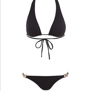 The Cannes Triangle Bikini is a gorgeous halterneck bikini decorated with eye-catching tri-circles sitting low on the wearers hip. Inspired by the sophisticated hues of the French Riviera, the Cannes bikini exudes true Melissa Odabash glamour. Allowing for fuller coverage on the bust, thanks to wider straps of the finest Italian swimwear material, the Cannes bikini offers medium coverage in the briefs.