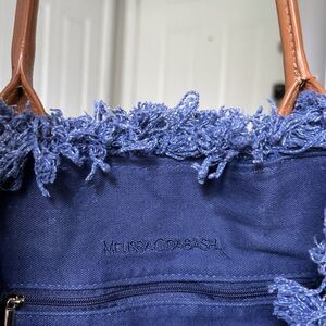 Melissa Odabash Cap Ferrat tote bag in navy blue cotton with leather handles