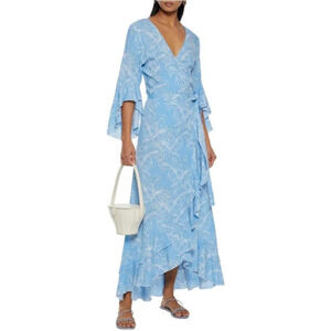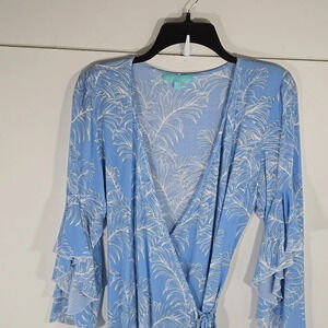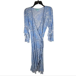 EUC: {Melissa Odabash} Cheryl Wrap Tropical Print Dress in Baby Blue - Size L