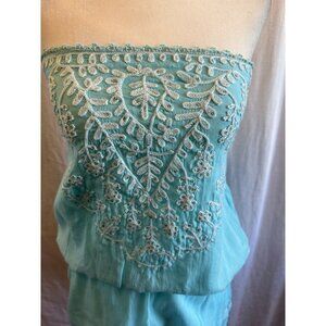 Melissa Odabash – Embroidered Beach Dress Strapless Teal Blue Sz Medium