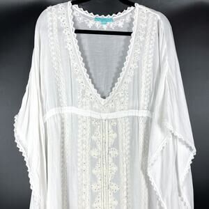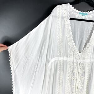 Melissa Odabash Kaftan Maxi Dress Coverup White V-Neck Eyelet Sequins One Size