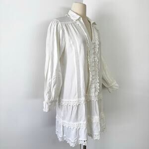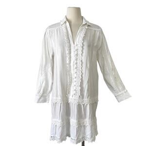 Melissa Odabash Lucia Embroidered Mini Dress Button-Down White M NWT