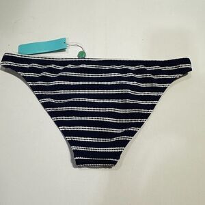 Melissa Odabash NWT Bikini Bottom Swim 6 Small Blue White Striped Gold Rings