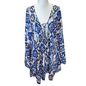 Melissa Odabash - Women’s Embellished Short Kaftan, Tunic Top - Blue, One Size