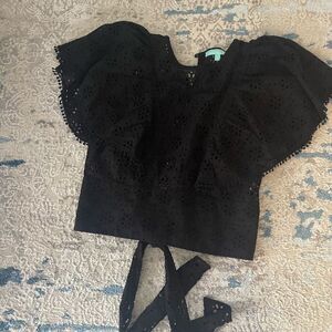 Melissa Odabash Black Flutter Sleeve Crop Blouse