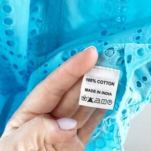 3/4 length sleeves, laser eyelet cutouts, dress, mini, teal, blue, swim cover up, vacation, resort, tropical, summer, beach cover up, boho, drop waist