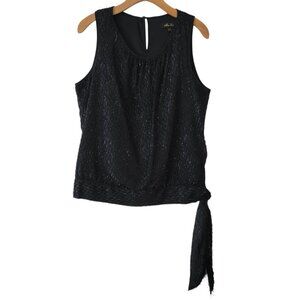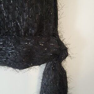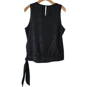 Melissa Paige Blouse Furry Fuzzy Metallic Sleeveless Top Black Sz M Side Tie