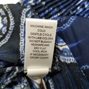 Melissa Paige Blue Pink Accordion Pleated Boho Top Tie Neck Button Cuff Size MP
