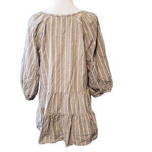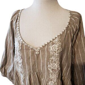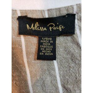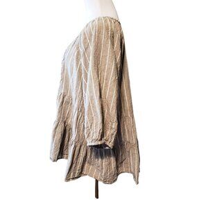 Melissa Paige Embroidered Floral Peasant Top Woman Tan and White Stripe size L