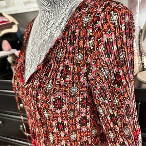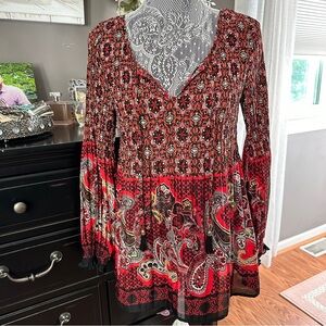 Melissa Paige Boho Peasant Tunic Top Red Paisley Print Long Sleeve Size M