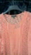 Chic coral top with lace accents. Short sleeves. Perfect for casual outings.