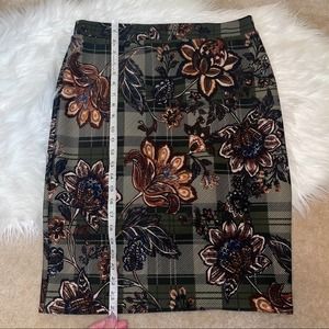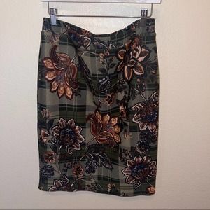 Melissa Paige Green Orange Floral Plaid Pattern Pencil Skirt Medium