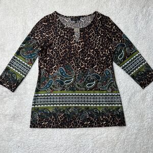 Melissa Paige Leopard Print Blue Green Pattern Tunic Large