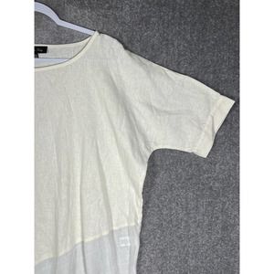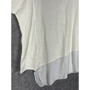Melissa Paige Linen Blend Asymmetrical Oversize Short Sleeve Top Medium Cream
