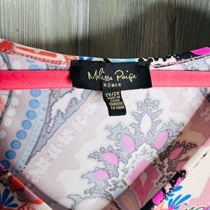 Beautiful Tunic with a V Neckline and Flowy Bell Sleeves. Approx measurements pit to pit 27”, Length from Shoulder to Bottom 30”.