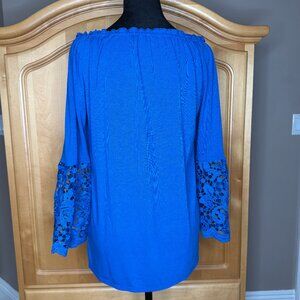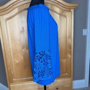 Melissa Paige Off Shoulder Soft Stretchy Blue Crochet Sleeves Blouse, Size S