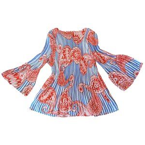 Melissa Paige Petite Boho Accordion Pleated Paisley Striped Top PM