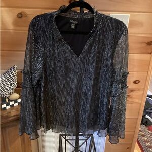 Beautiful black sparkle top be Melissa Paige Polyester with polyester lining Long bell sleeves Machine washable