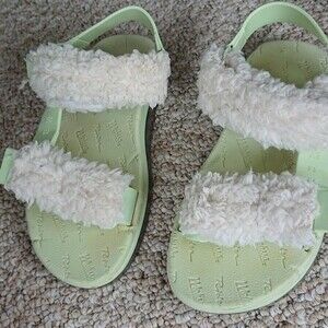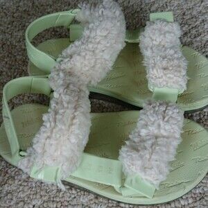 Melissa Papette Fluffy Rider Faux Shearling Sandal in mint green size 7