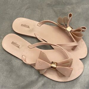 Melissa Pink Harmonic Side Bow Ribbon Thong Flip Flops Sandals Size 8