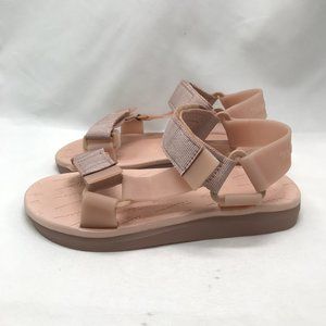 Stylish pink sandals with adjustable straps. Comfortable and trendy design.