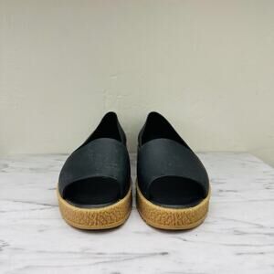 Melissa Puzzle Peep Toe Black Leather Slip On Sandals Women’s Size 8