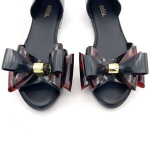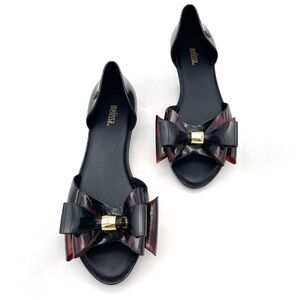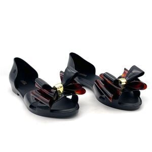 Melissa Seduction Bow Jelly Flats Black Tortoise Melflex Sandals Women’s Size 5
