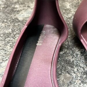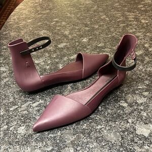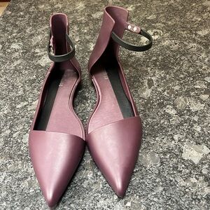 This is a beautiful pair of Melissa Sz 8 D’Orsay Ankle Pointed Toe Eggplant Purple Flat Sandals - New, unworn. Adjustable ankle strap.