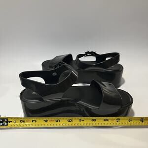 Melissa Women’s Mar Platform Sandals 7 Black Ankle Strap Buckle Retro 70’s Y2K