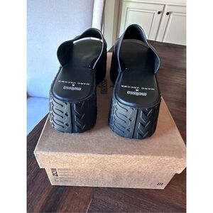 Mark Jacobs X Melissa, the “Becky” mules. Chunky style mules/slides/sandals crafted from Melissa melflex plastic which is 100% recyclable. Cushioned foot bed with repeat Marc Jacob logo on sole using Melissa signature M. Open toe, vegan, waterproof. Super comfy! super stylish! Worn once for a couple of hours. Like new!! See pictures for condition and measurements. Comes in original box. Size 7.