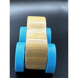 Melissa & Doug Stackable Wooden Cars replacement car with orange cat driver and blue plastic wheels. See photos for condition and dimensions.