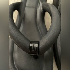 A cool take on classic flip flops, these monochrome Melissa sandals feature a puffy strap at the upper and a generous platform. Size 38/7 (Marked 7 but I think you could wear them up to an 8)