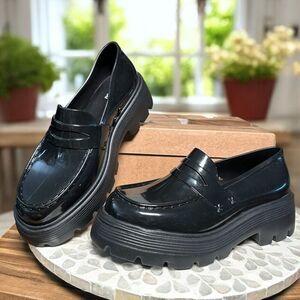 Melissa shoes, Royal loafers, vegan loafers, chunky loafers, patent loafers, platform shoes, black slip-ons, jelly shoes, Melflex, sustainable fashion, women’s size 7, new in box, limited, Collectible, influencer, waterproof,