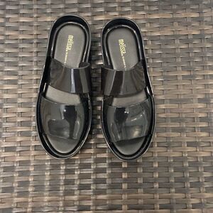 Melissa’s Y2K chunky platform sandals women’s size 6 the color is black in good preowned condition normal wear and tear. See pictures for more details.