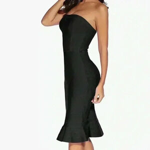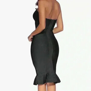 Rayon Strapless Bandage Bodycon Midi Peplum Dress
