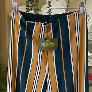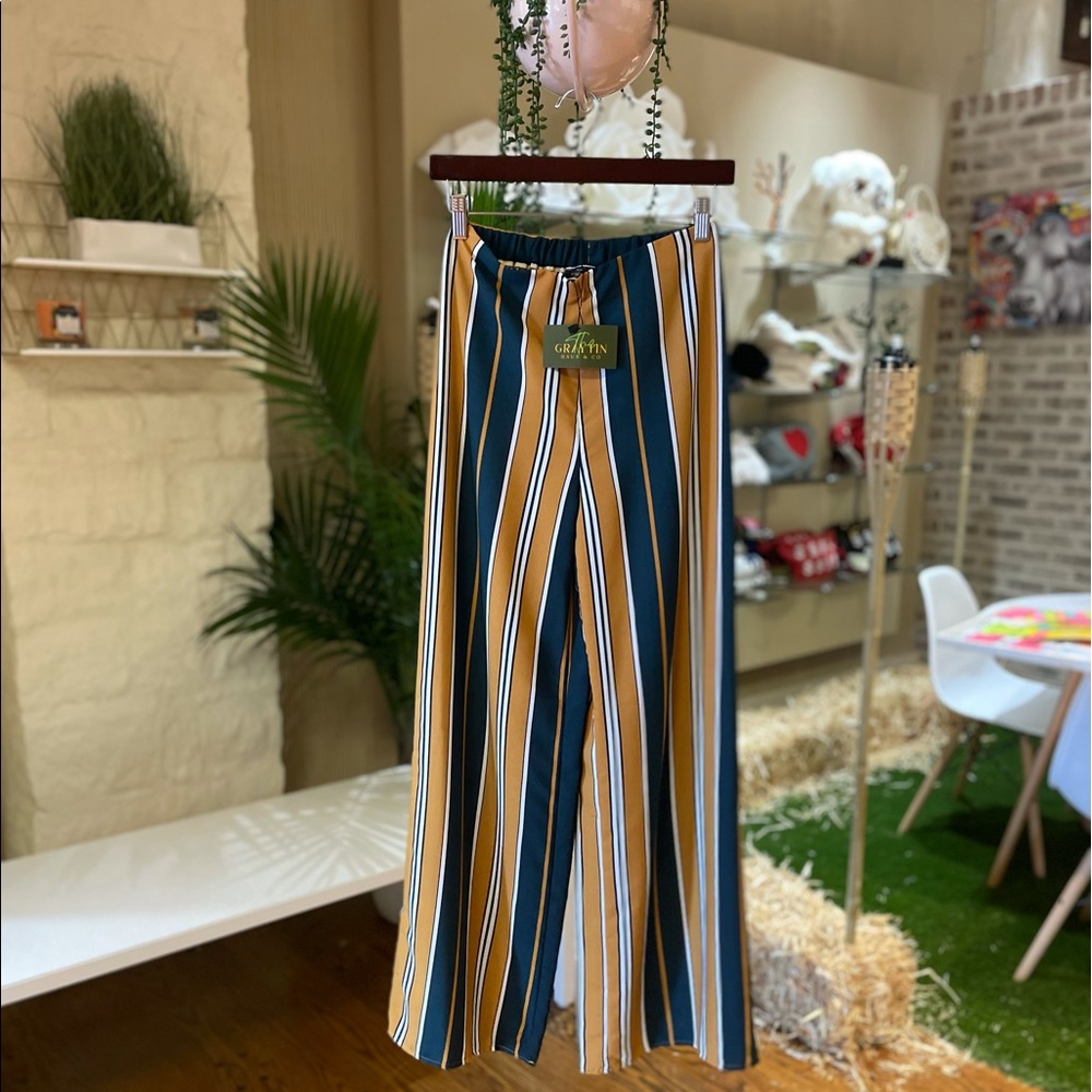 These Mella Mustard Multi-color Wide leg pants are just the right mix of daytime & disco. Business, Bar or Brunch. Pair these with a basic top or and duster, cardigan or crop top.