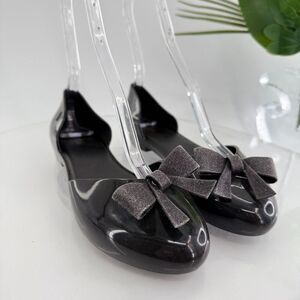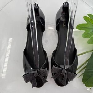Mellisa Ballet Flats Womens Size 8 Black Jelly Bow Slip On D'orsay Shoes