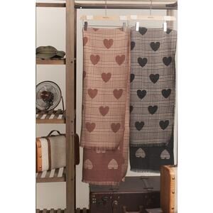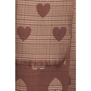 Mello Brown Heart Print Plaid Scarf with Raw Edge