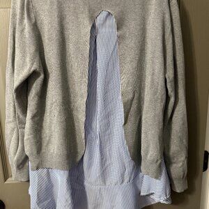 Mello Day 1XL Gray Sweater & Striped Tank 2-in-1 Layered Top