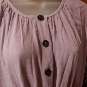 Soft and romantic lavender maxi dress from Mello Day, perfect for spring and summer days. This new-with-tags piece features button front styling and a matching belt to cinch the waist for a flattering silhouette.