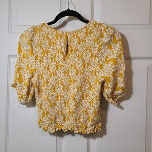 Mello Day NWOT Yellow Stretch Cropped Floral Top Size Small