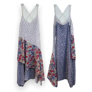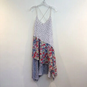 Mello Day V Neck Floral Polka Dot Tiered Ruffle Strappy Midi Dress Women's Small