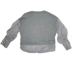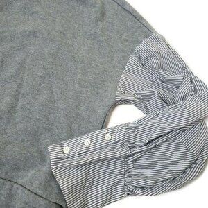 Mello Day Womens Medium Gray & Striped Cotton-Polyester Contrast Sweater Top