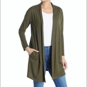 MelloDay Black Open Front Side Pockets Butter Super-Soft Olive Green Cardigan