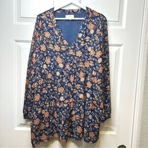 Melloday Blue Floral Print Long Sleeve Babydoll Mini Dress L
