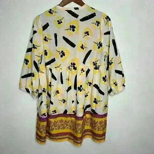 Melloday Boho Colorful Floral Tunic with tie neck Sz L